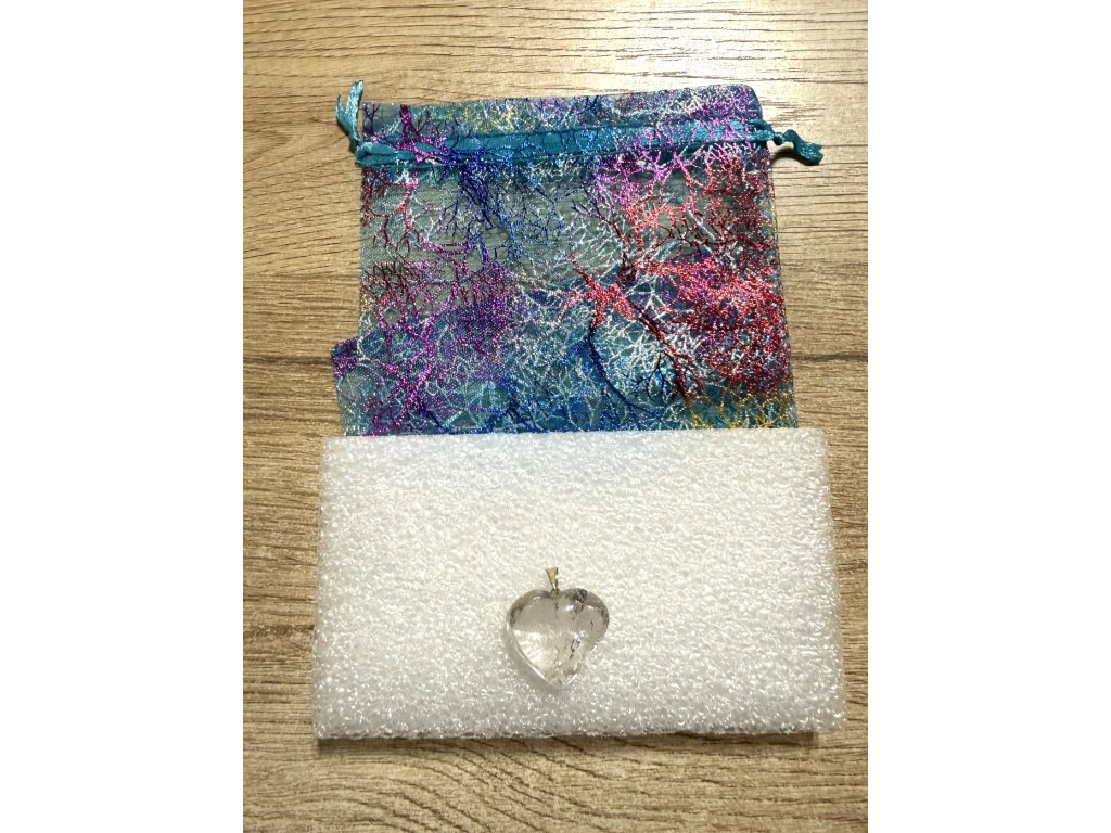 Elegantní přívěsek z přírodního křišťálu, vybroušený do tvaru srdce. Symbol čistoty, harmonie a pozitivní energie – ideální jako stylový doplněk i originální dárek.